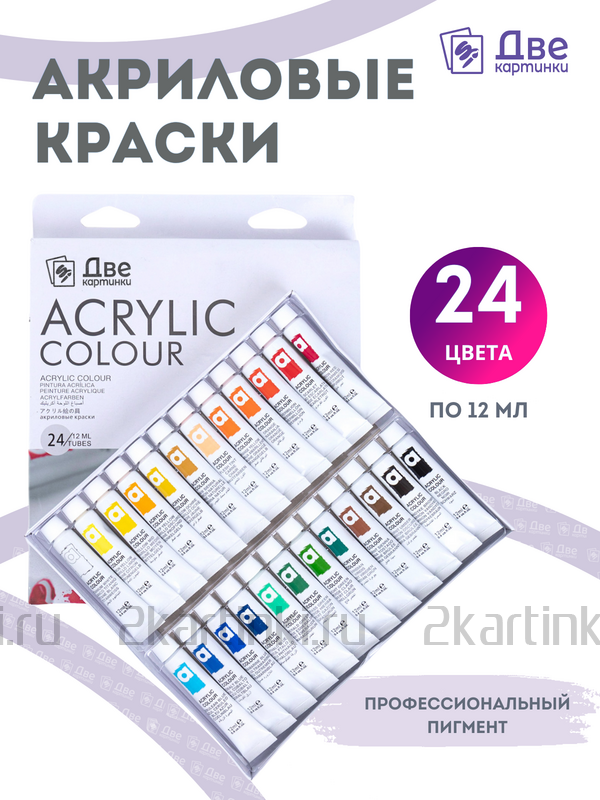 Художественный материал «Акриловые краски «Две картинки» 24 шт. по 12 мл, проф. пигмент» размером см. купить по выгодной цене 970 ₽ с доставкой по Москве и всей России.