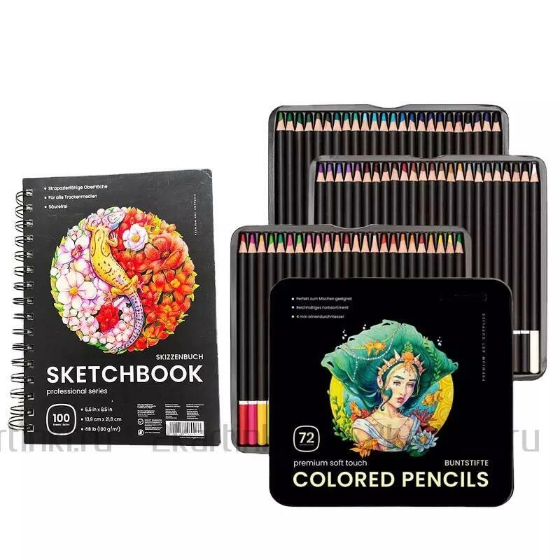 - Особенности 3 скетчбука, карандаши 72 цвета